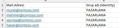 Öncelikle üyelik listemizi ve üye olunacak grup bir excel listesinde iki sütün da düzenlenir.