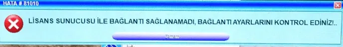 Hatanın çözümün için sunucu üzerinde hizmetler bölümünden “ETA : Sunucu Lisans Yöneticisi” hizmeti başlatılmalıdır. Bu şekilde sorunun giderildiği gözlemlenmiştir.