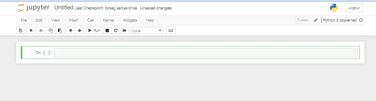 Böylece kodlama yapacağımız bütünleşik Jupyter Notebook geliştirme ortamına erişilmiş olunur.