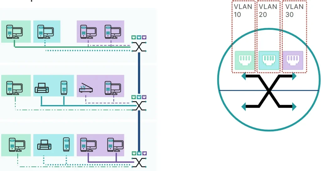 Trunk port, birden fazla VLAN’ın veri akışını sağlayan bir switch portudur. Trunk portlar, farklı VLAN’lara ait cihazların aynı switch veya farklı switch’ler arasında iletişim kurmasını sağlar.